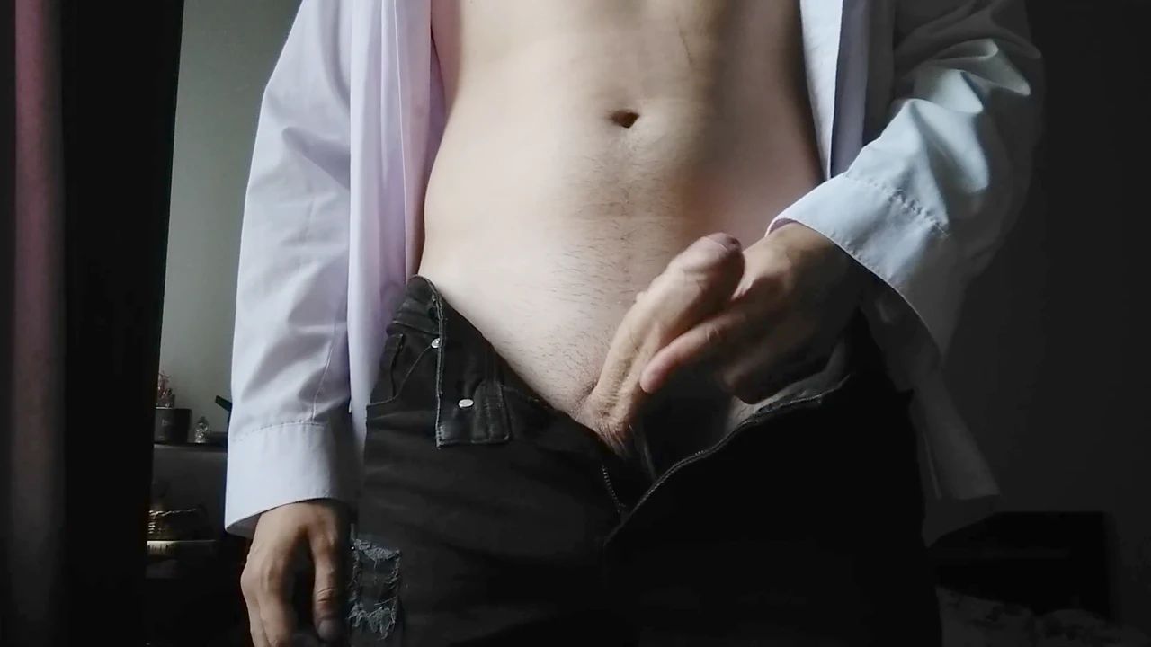 Inexperienced, tight jeans, gay jerking off
